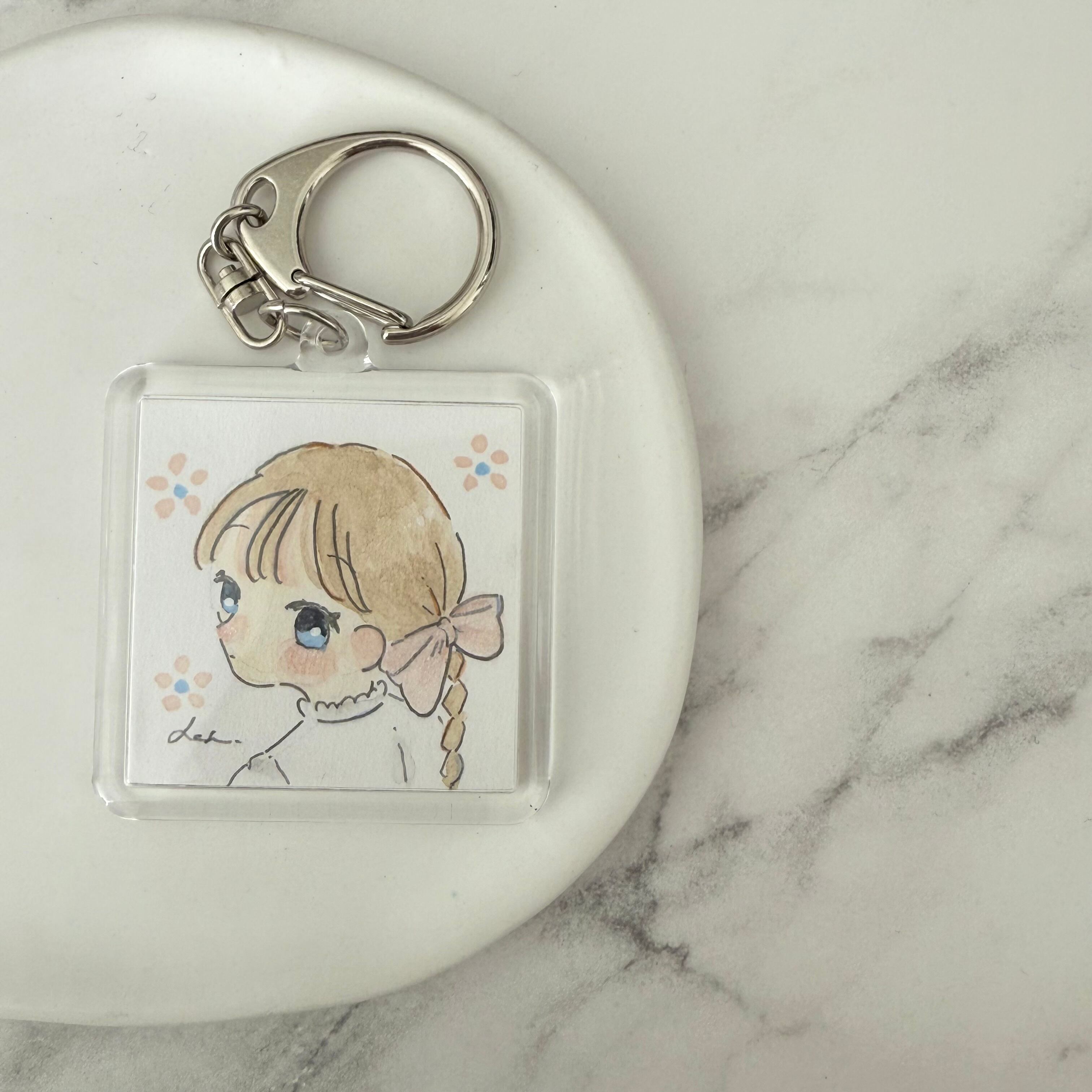 バッグなどにも付けやすい原画キーホルダーです